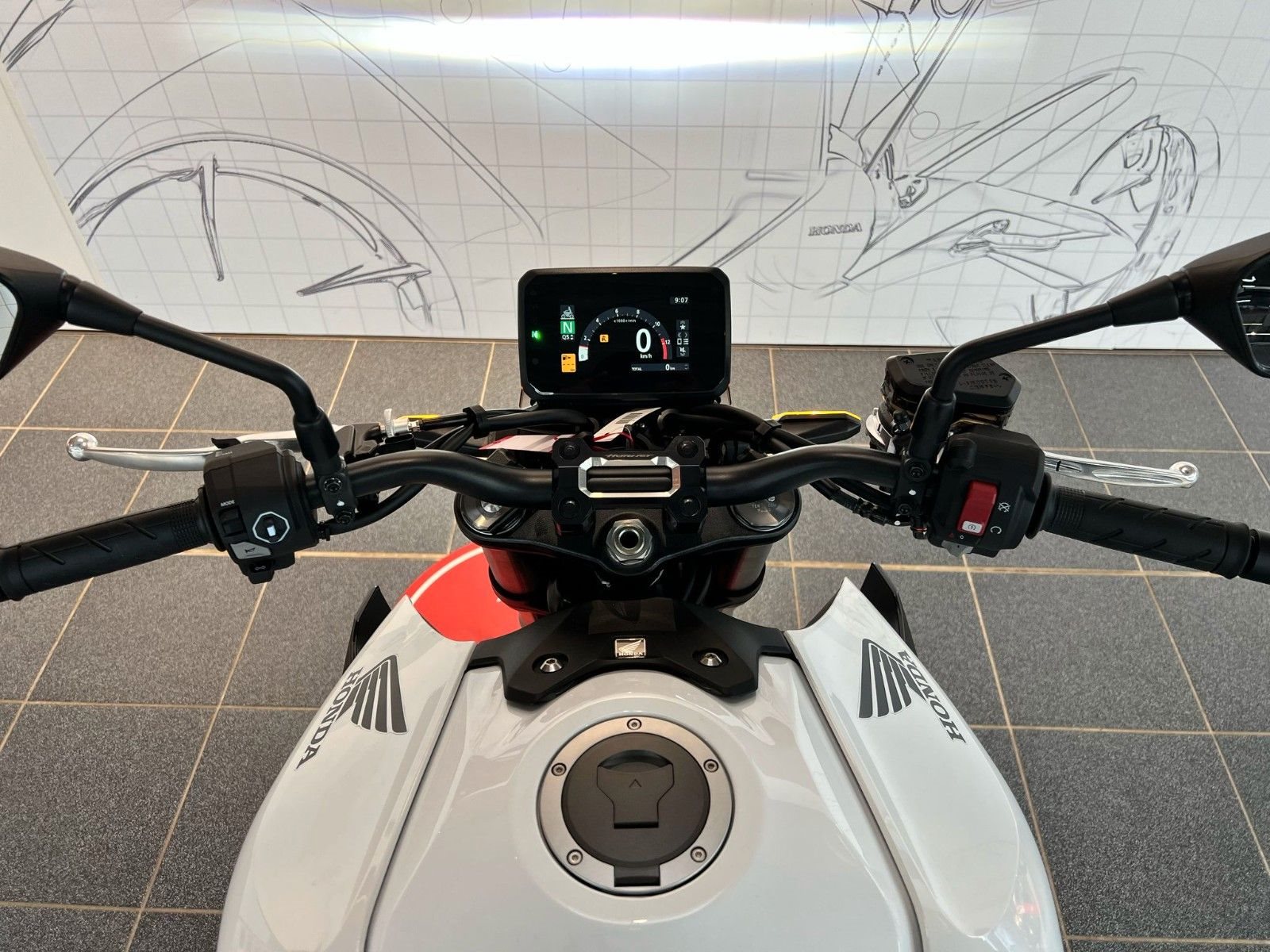 5-Zoll TFT-Farbdisplay mit Honda RoadSync-Konnektivität: Die Honda RoadSync-App bietet eine Reihe nützlicher Funktionen: Navigations-, Nachrichten- und Freisprechfunktionen, Musikwiedergabe, Wettervorhersagen für die aktuelle Position und den Zielort.